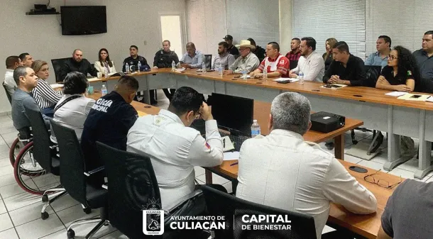 Culiacán, Sin., a 09 de marzo de 2023.- El secretario de Seguridad Pública y Tránsito Municipal, Sergio Antonio Leyva López, encabezó una reunión de trabajo para fortalecer el Operativo de Semana Santa 2023 en el municipio de Culiacán, en la cual participaron los representantes de la Coordinación Municipal de Protección Civil, Unidades Preventiva y Vialidad y Tránsito, Bomberos, Cruz Roja, Síndicos y Centros de Barrio.