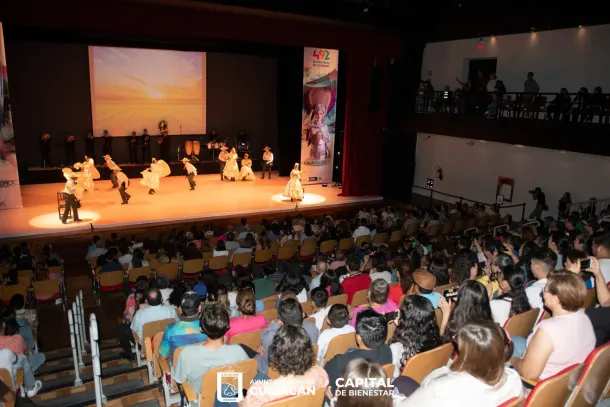 Culiacán, Sin., 29 de septiembre de 2023.– Con el espectáculo Sinaloa, tierra fértil de danzantes, y el acompañamiento en vivo de la banda Kabonnys, abrió en punto de las 18:00 horas la Gala Folclórica d la Compañía Folclórica Sinaloense, en el Teatro MIA, esto en el marco de los festejos por el 492 Aniversario de Culiacán.