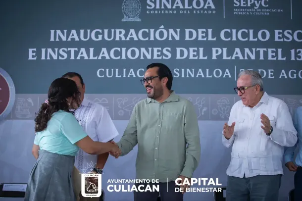 Culiacán, Sin., a 26 de agosto de 2024.- En el marco del inicio del ciclo escolar y la entrega del plantel No. 130 de Cobaes ubicado en el sector La Conquista, el alcalde Juan de Dios Gámez Mendívil se comprometió ante el gobernador Rubén Rocha Moya, autoridades y estudiantes del centro educativo, a pavimentar la avenida Virtud, vialidad que funge como acceso principal de dicha escuela.