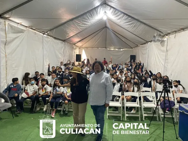 El primero de ellos, con alumnos de nivel primaria, quienes entusiasmados realizaron preguntas al autor, el cual, se describió a sí mismo como una persona muy observadora, lo cual lo ha llevado a inspirarse en el entorno para realizar sus obras, que, dicho sea de paso, ya suman 26.