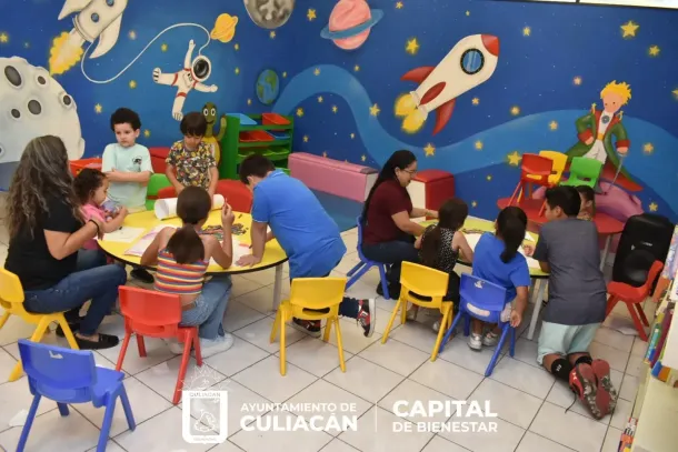 Culiacán, Sin., a 19 de agosto de 2023.- Un nutrido grupo de niños participaron en los talleres de fomento a la lectura de la biblioteca “Rosa María Peraza”, impartidos por el Instituto Municipal de Cultura de Culiacán (IMCC).