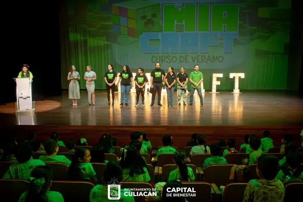 Culiacán, Sin., 14 de julio de 2025.- Con la participación de más de 200 niñas y niños de entre 5 y 13 años, este lunes fue inaugurado el curso de verano 2025 “Miacraft” en las instalaciones del Instituto MIA, donde, del 14 de julio al 1 de agosto, se ofrecerán actividades de 9:00 a.m. a 2:00 p.m.
