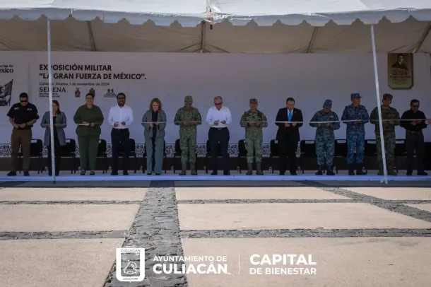 Culiacán, Sin., a 01 de noviembre de 2024.- En aras de fortalecer la educación cívica y fomentar los valores de la nación en niños y jóvenes, así como estrechar un vínculo cercano entre el Ejército Mexicano con la ciudadanía, el alcalde Juan de Dios Gámez participó junto al gobernador del estado, Rubén Rocha Moya, y autoridades militares, en la inauguración de la exposición militar “La Gran Fuerza de México”.