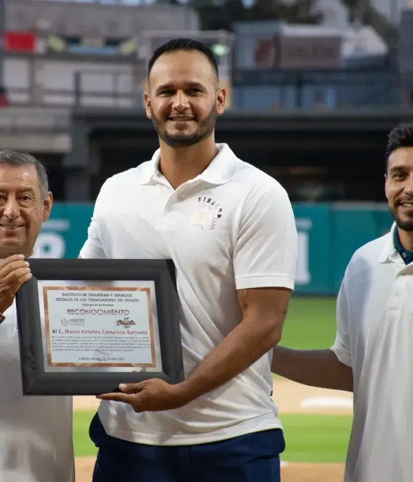 En el acto también se realizó un homenaje al exbeisbolista profesional y deportista destacado, Marco Antonio Camarena Barrueta, quien recibió el reconocimiento por parte del director general del ISSSTE.