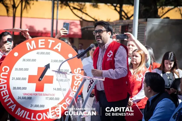 Tras ello, Carlos Bloch Artola, delegado de Cruz Roja Mexicana, Delegación Sinaloa, detalló que la colecta inicia hoy y concluye el 31 de marzo, con una meta de 40 millones de pesos a nivel estatal, y de 10 millones de pesos en el municipio de Culiacán.