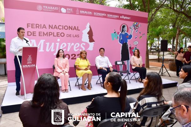 Culiacán, Sin., a 29 de marzo de 2023.- Con la plazuela Gral. Álvaro Obregón como sede, dio inicio la Feria Nacional del Empleo de las Mujeres en Culiacán, misma que busca posicionar en vacantes dignas a las buscadoras de oportunidades con una gran oferta de opciones con posibilidades de crecimiento.