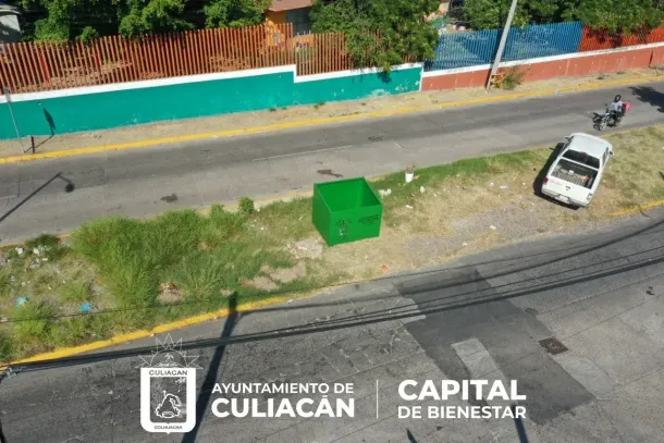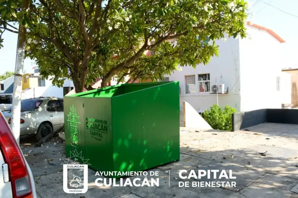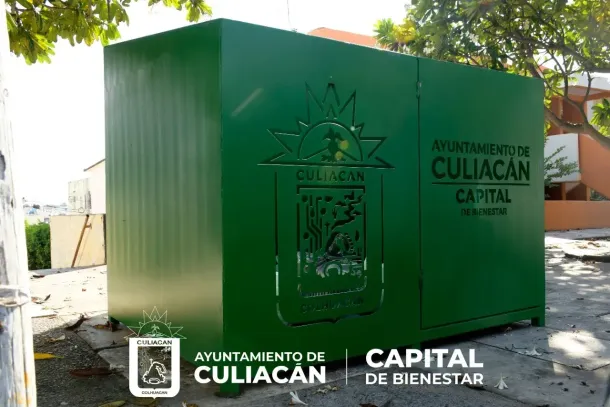 Culiacán, Sin., a 19 de octubre de 2022.- Con la finalidad de contribuir a que Culiacán sea una ciudad más bella y limpia, el Ayuntamiento inició con la instalación de contenedores de basura en complejos habitacionales.