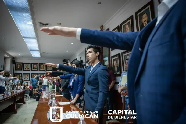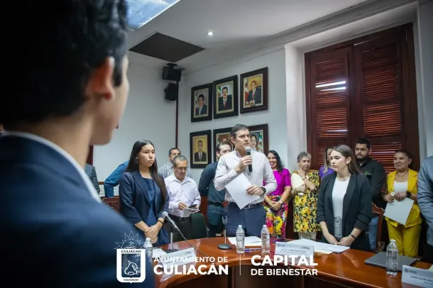 Durante de la sesión, el secretario del Ayuntamiento, José Ernesto Peñuelas Castellanos, en representación del alcalde Juan de Dios Gámez Mendívil, felicitó a los jóvenes estudiantes que integran la primera edición del Cabildo Juvenil 2023, por sumarse a este ejercicio de participación y contribuir, a través de su capacidad y talento, en la construcción de un mejor Culiacán.