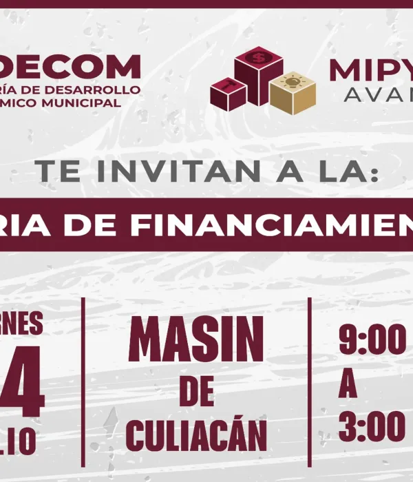 Janet Faviola Tostado Noriega, Secretaria de Desarrollo Económico del municipio de Culiacán, informó que con el objetivo de continuar apoyando la reactivación económica y generar un punto de encuentro para los pequeños, medianos y grandes empresarios del municipio, se realizará esta Feria de Financiamiento que busca fomentar una mayor vinculación de negocios con la oferta privada y pública de financiamiento.