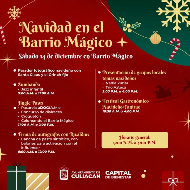 Explicó que este evento se realiza en colaboración entre el Ayuntamiento de Culiacán, asociaciones protectoras de animales, el Patronato del Barrio Mágico, empresas locales y la ciudadanía, quienes han sido un impulso para llevar a cabo este gran festival navideño.