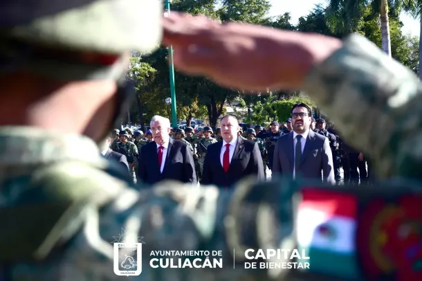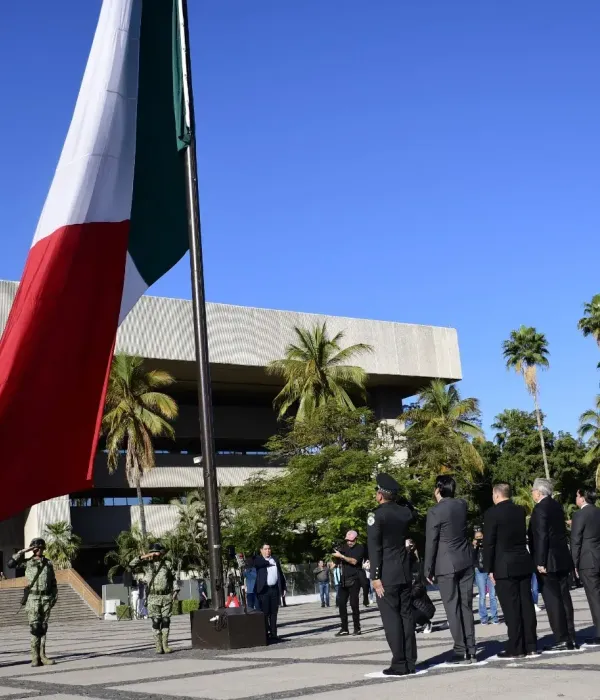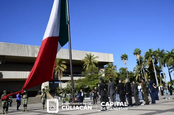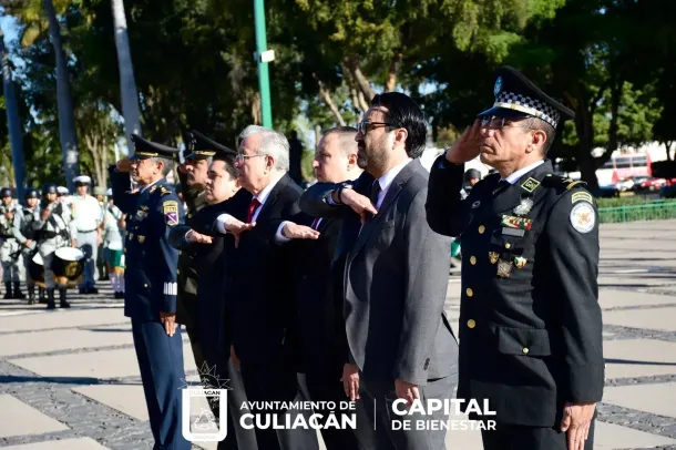 Culiacán, Sin., a 21 de marzo de 2023.- En el marco del 217 aniversario del natalicio de Benito Pablo Juárez García, el alcalde Juan de Dios Gámez Mendívil presidió junto al gobernador Rubén Rocha Moya, y autoridades de los tres niveles de gobierno al izamiento de bandera a toda asta en homenaje al Benemérito de Las Américas.