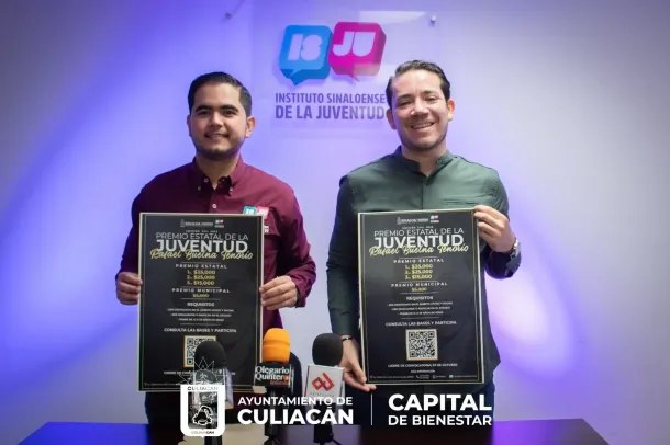 Culiacán, Sin., 3 de octubre de 2023.– Con el objetivo de reconocer acciones a favor de la sociedad en diversos ámbitos, el Instituto Sinaloense de la Juventud (ISJU), en conjunto con el Instituto Municipal de la Juventud (IMJU), lanzaron la convocatoria al “Premio Estatal de la Juventud Rafael Buelna Tenorio” dirigido a jóvenes en edades de 12 a 29 años de edad.