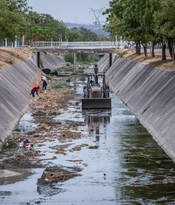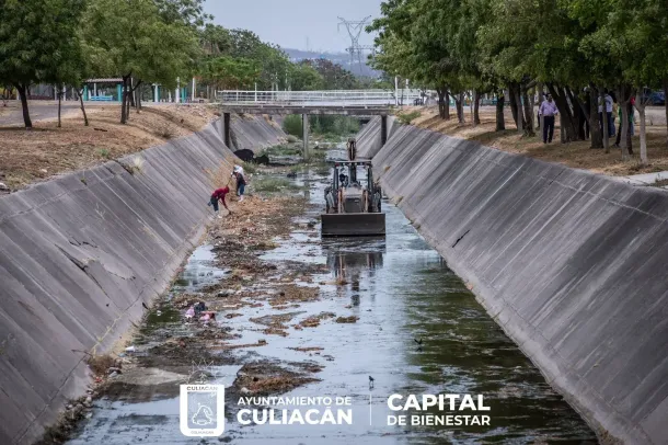 Culiacán, Sin., a 18 de mayo de 2023.- El programa de limpieza y desazolve de arroyos, drenes y canales avanza en los más de 76 afluentes registrados en la zona urbana, esto con la finalidad de inhibir el riesgo de inundaciones durante la temporada de lluvias.