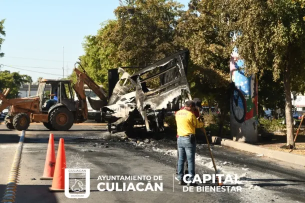 Por su parte, el presidente municipal informó que, toda vez que la situación fue controlada en la capital, el Ayuntamiento de Culiacán ha venido trabajando de manera intensa en la limpieza y retiro de vehículos calcinados que fueron utilizados para obstruir el tránsito vial en diferentes puntos de la ciudad.