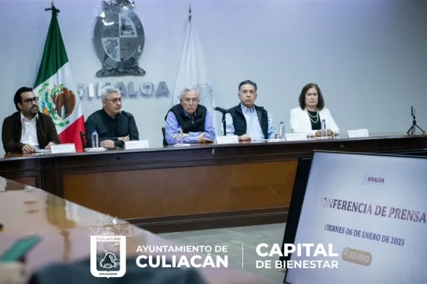 Culiacán, Sin., a 06 de enero de 2023.- En conferencia de prensa organizada por el Gobierno del Estado de Sinaloa, el gobernador Rubén Rocha Moya, y el alcalde Juan de Dios Gámez Mendívil, junto al secretario General de Gobierno, Enrique Inzunza Cázarez, la Fiscal General del Estado, Sara Bruna Quiñónez, y el secretario de Seguridad Pública de Sinaloa, Cristóbal Castañeda Camarilla, dieron a conocer un balance de los hechos violentos registrados durante el día de ayer.
