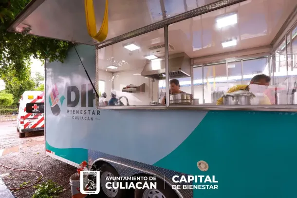 Culiacán Sinaloa, 23 de octubre del 2023.- Con el propósito de llevar alimento caliente a las familias que se encuentran refugiadas en el albergue de la comunidad El pinole en Culiacancito, el sistema DIF Bienestar, activó la cocina móvil ALAJIBUA, perteneciente al programa de comedores comunitarios.