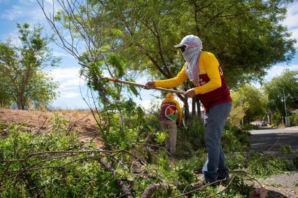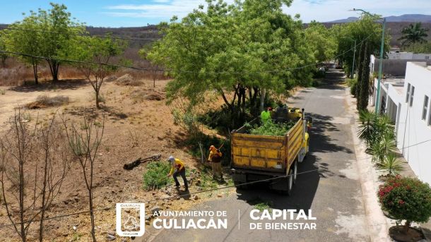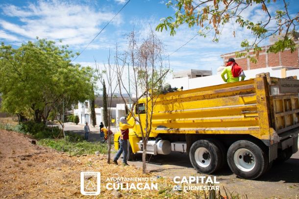 Culiacán, Sin., a 25 de mayo de 2023.- El programa de limpieza y acondicionamiento de los espacios públicos del municipio, arribó este jueves al Fraccionamiento Hacienda del Río, sitio en el que la Dirección General de Servicios Públicos brindó acciones de limpieza y mantenimiento del parque y área verde ubicados en la zona.
