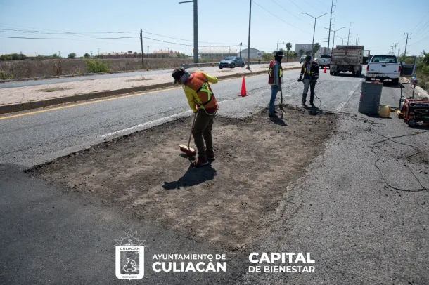 Culiacán, Sin., a 15 de abril de 2023.- Mejorar el entorno vial de la capital sinaloense es una de las prioridades que el Ayuntamiento de Culiacán ha asumido con objetivo de contribuir al bienestar social, por ello, las labores de mantenimiento vial llegaron hoy hasta la carretera México 15.