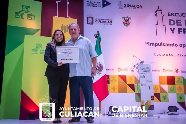 Al finalizar la conferencia, Marcus Dantus recibió un reconocimiento de manos de la directora de Inversión y Gestión del Ayuntamiento de Culiacán, María del Rosario Valdez Páez, en agradecimiento por su aportación y por compartir su experiencia con la comunidad empresarial sinaloense.