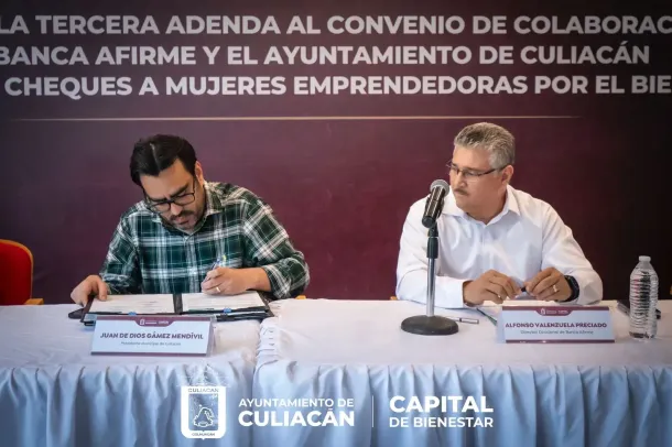Culiacán, Sin., a 10 de julio de 2024.- En un gran esfuerzo en conjunto entre el Ayuntamiento de Culiacán y Banca Afirme, el alcalde Juan de Dios Gámez Mendívil presidió la entrega de créditos y la firma de la tercera adenda del convenio de colaboración que ha impulsado la economía de las culiacanenses a través del programa ´Mujeres Emprendedoras por el Bienestar´.