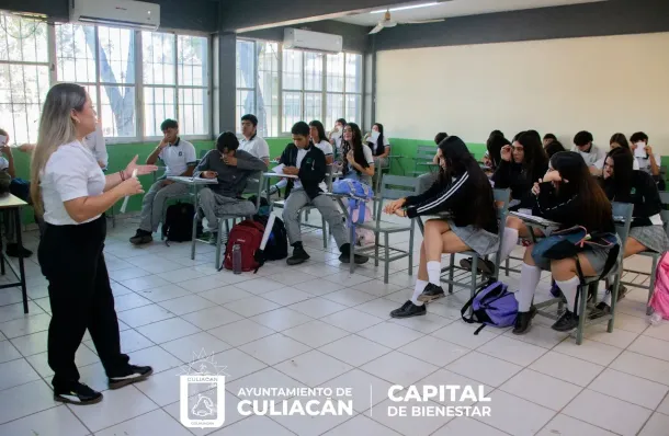 Culiacán, Sin., 5 de noviembre de 2025.- Con el propósito de fomentar la seguridad y el cuidado colectivo entre estudiantes, el Colegio de Bachilleres del Estado de Sinaloa (Cobaes) Plantel 24, ubicado en la colonia Emiliano Zapata, fue sede de la plática “No voy sola”, impartida por personal del Compavif.