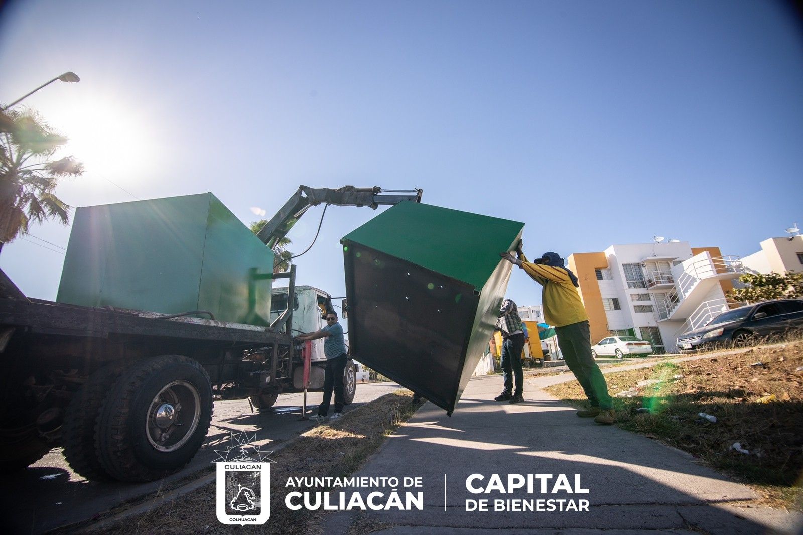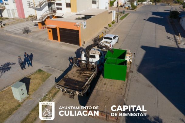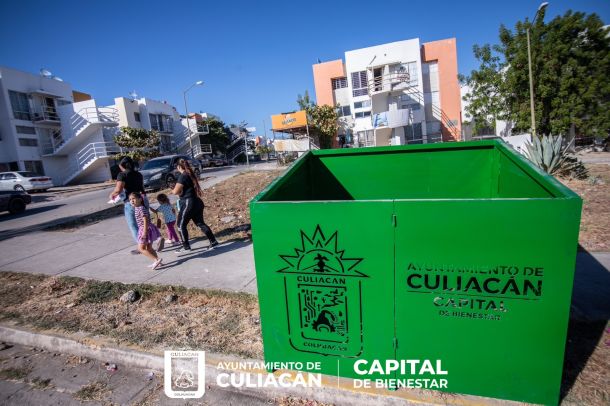 Culiacán, Sin., a 10 de enero de 2023.- A fin de mejorar el entorno del Fraccionamiento Zona Dorada, el Ayuntamiento de Culiacán instaló un total de seis contenedores en dicho sector, los cuales contribuirán a mantener los espacios públicos más limpios y ordenados.