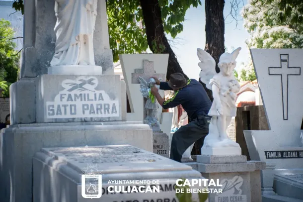 Culiacán, Sin., a 28 de octubre de 2024.- El acondicionamiento y limpieza de los siete panteones administrados por el Ayuntamiento de Culiacán se encuentran al cien por ciento en condiciones para recibir a visitantes, previo a las festividades de Todos los Santos y el Día de los Muertos el próximo 1 y 2 de noviembre.