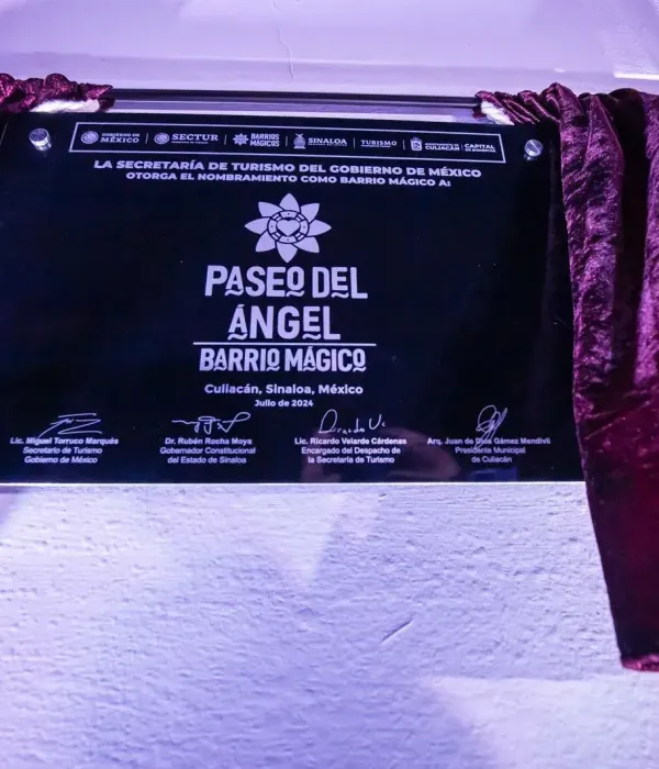 Culiacán, Sin., a 11 de julio de 2024.- En un evento histórico que sin duda dejará huella en la capital del estado, el Paseo del Ángel recibió el nombramiento "Barrio Mágico", con lo que se proyecta potencializar el comercio y el turismo y generar así una mayor derrama económica por medio de esta concurrida zona del centro de la ciudad.