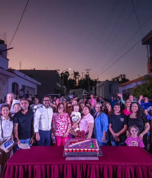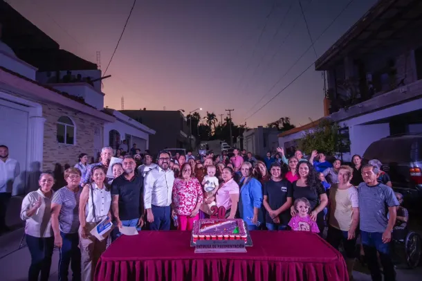 Culiacán, Sin., a 13 de noviembre de 2024.- La entrega de calles pavimentadas continúa en toda la ciudad, y en esta ocasión tocó el turno a la calle Quinta en la colonia Cimas del Humaya, donde los colonos festejaron con un pastel que su petición hoy se ve cristalizada.