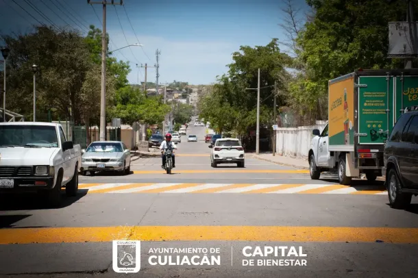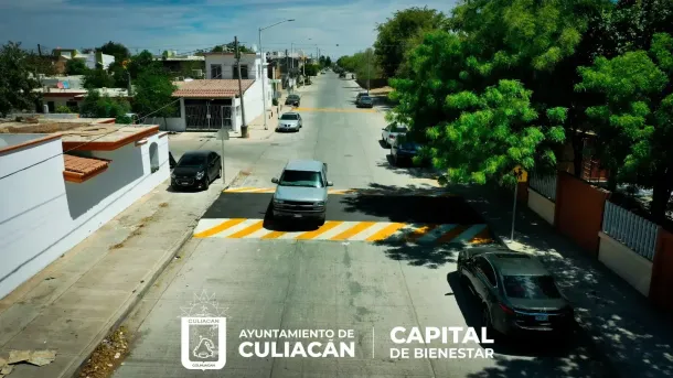 La obra de mejora al desplazamiento peatonal de los alumnos localizada en calle José C. Valadez de la colonia Emiliano Zapata, espacio en el que se pintaron dos reductores de velocidad y el paso seguro hacia la escuela Antonio Nakayama.