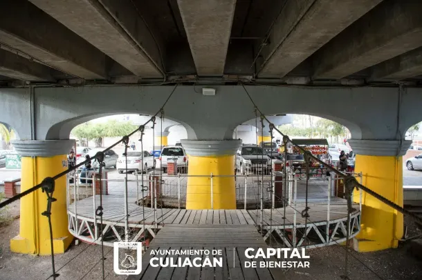 Culiacán, Sin., a 10 de febrero de 2023.- Las labores de mantenimiento en toda la ciudad persisten, y en esta ocasión tocó el turno al puente que conecta de la Plazuela Rosales al bulevar Diego Valadés.