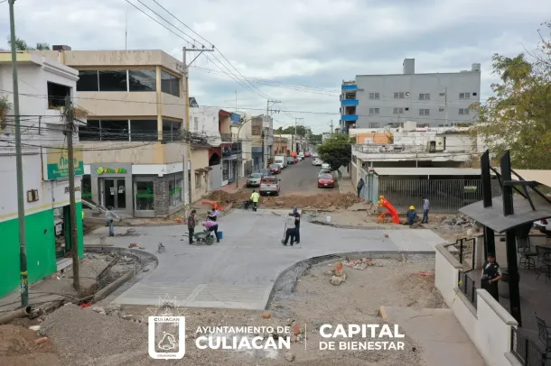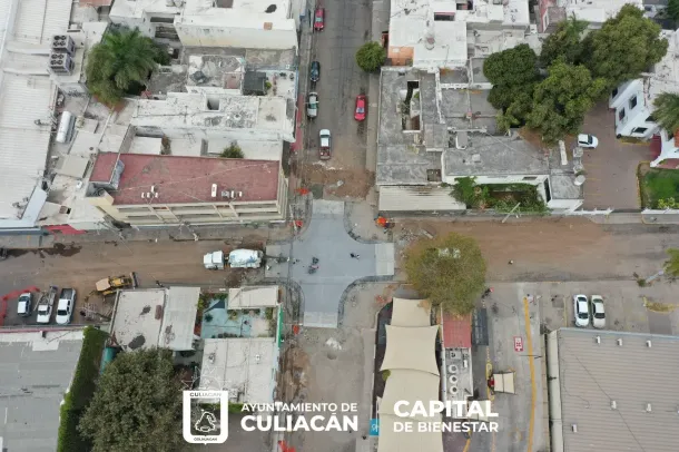 Culiacán, Sin., a 18 de marzo de 2023.- Tras varios días de trabajo, se acerca la conclusión de la rehabilitación del crucero ubicado en calle Ignacio Zaragoza y Domingo Rubí, en el primer cuadro de la capital.