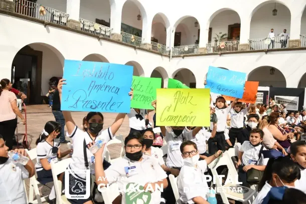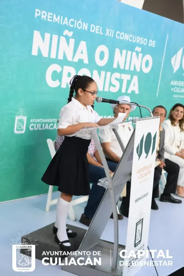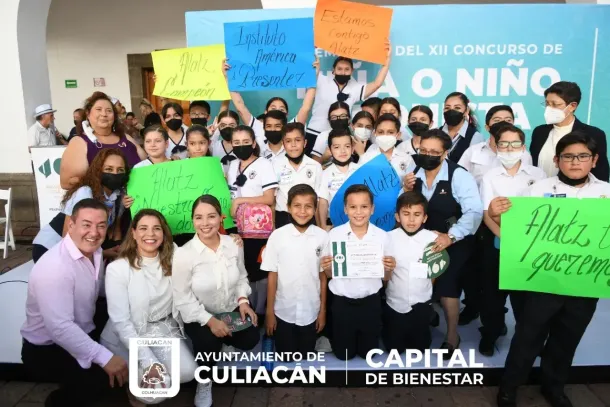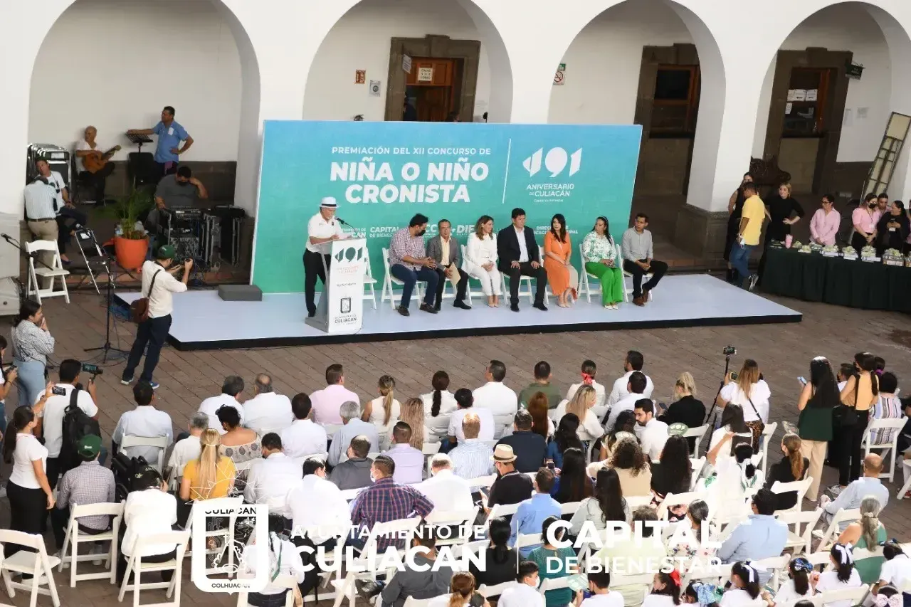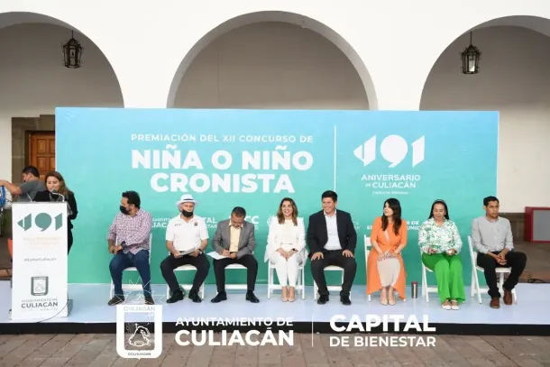 Culiacán, Sin., a 29 de septiembre de 2022.- En el patio del Ayuntamiento se entregó el premio del XII Concurso de la Niña o Niño Cronista de Culiacán, esto entre un total de 162 trabajos de 14 escuelas participantes, de los cuales se eligieron los 5 primeros lugares.