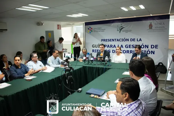 Culiacán, Sin., a 31 de mayo de 2023.- Como parte fundamental para el combate relacionado con actos ilícitos de la función pública, la Secretaría Ejecutiva del Sistema Estatal y Municipal Anticorrupción del Estado de Sinaloa presentó la ´Guía para la Gestión de Riesgos de Corrupción”, como material pedagógico de socialización y divulgación.