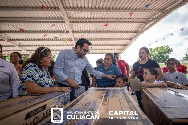 Culiacán, Sin., a 07 de octubre de 2025.- En cumplimiento de los compromisos asumidos durante la entrega de la obra del puente vehicular en Casas Blancas, el alcalde Juan de Dios Gámez Mendívil regresó cuatro meses después a la comunidad para entregar el equipamiento del sistema de aire acondicionado en la escuela primaria local.