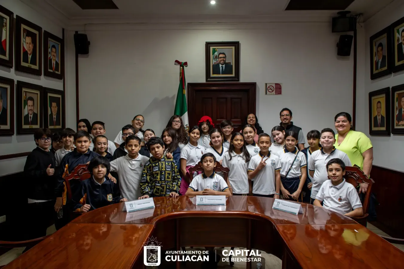 Culiacán, Sin., 12 de diciembre de 2025.- Como parte de las actividades educativas promovidas por la Dirección de Educación Municipal a través del programa “Conoce tu Ayuntamiento”, estudiantes de la Escuela Primaria Eustaquio Buelna realizaron un recorrido especial por las instalaciones del Palacio Municipal.