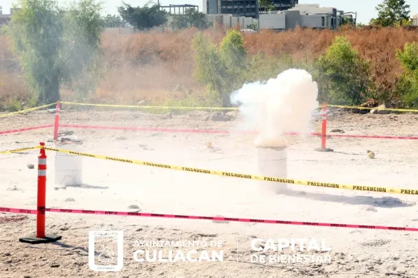 Culiacán, Sin., a 25 de noviembre de 2022.- Con el propósito de generar una mayor conciencia en la población sobre los efectos nocivos causados por la pirotecnia utilizada por menores de edad durante la temporada decembrina, la Coordinación Municipal de Protección Civil, en conjunto con el Cuerpo de Bomberos, realizó la detonación controlada de diferentes artefactos con pólvora para informar sobre el peligro provocado a la persona que lo manipula.