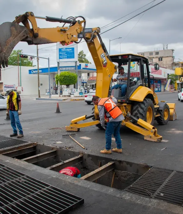 Como parte de este esfuerzo, el día de hoy las cuadrillas pertenecientes al Departamento de Conservación y Mantenimiento de Infraestructura realizaron obras de limpieza y desazolve en las rejillas del sistema de alcantarillado en el cruce de la avenida Álvaro Obregón y Aguilar Barraza.
