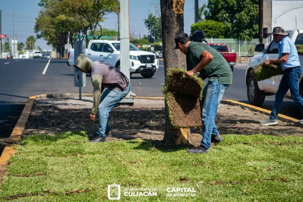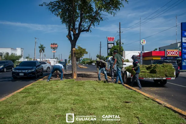 Culiacán, Sinaloa; a 23 de abril de 2026.- El Ayuntamiento de Culiacán avanza en la recuperación de espacios públicos con la rehabilitación de áreas verdes en el bulevar José Limón y el Eje Federalismo, mediante la colocación de césped y trabajos integrales que contribuyen a dignificar estas importantes vialidades.