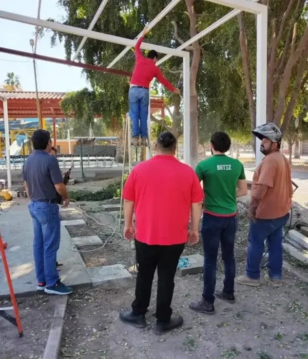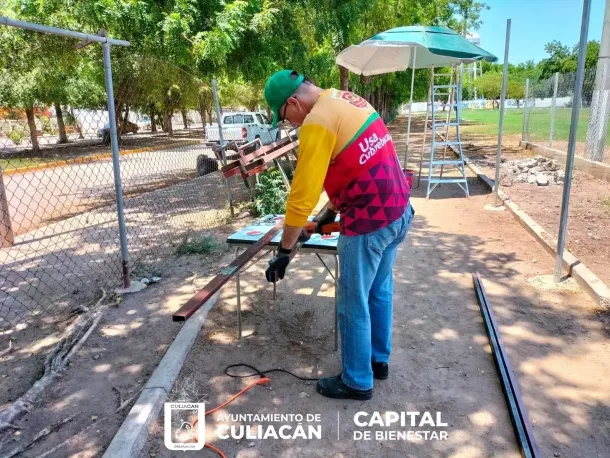 Del mismo modo, se llevó a cabo la reparación de una de las piezas que sostiene la barda metálica que rodea la cancha deportiva de fútbol, por lo que fue reparada con trabajos de soldadura para su correcta adecuación.