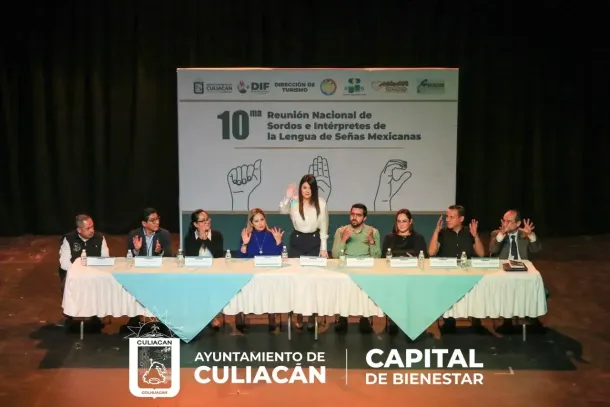 Culiacán, Sin., a 17 febrero 2023.- Con la finalidad de impulsar a Culiacán como una ciudad capital incluyente y brindar mejores oportunidades de vida para la comunidad de personas sordas, la presidenta del Sistema DIF Bienestar, Irma Nidya Gasca Aldama, inauguró este viernes, la Décima Reunión Nacional de Sordos e Intérpretes de Lengua de Señas Mexicana.