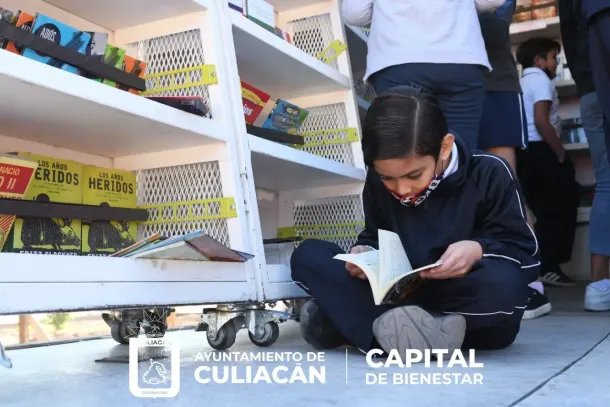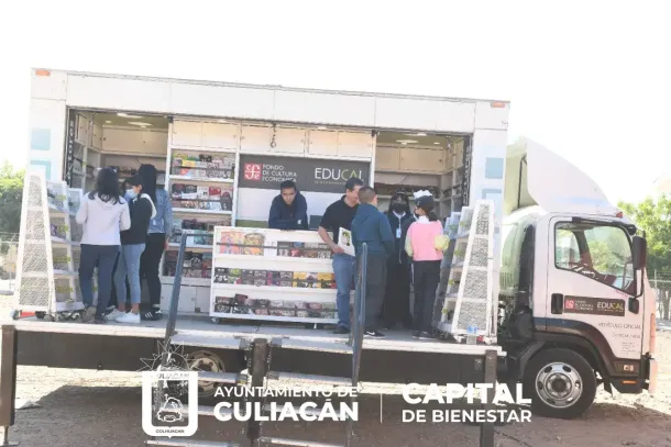 Culiacán, Sin., a 14 de diciembre de 2022.- El universo de conocimiento arribó a la Primaria Estatal de Alturas del Sur, con la Ruta-Librobús actividad que forma parte de la Feria Internacional del Libro Culiacán 2022, espacio donde los estudiantes admiraron una gran cantidad de ejemplares con diferentes temas de interés para ellos.