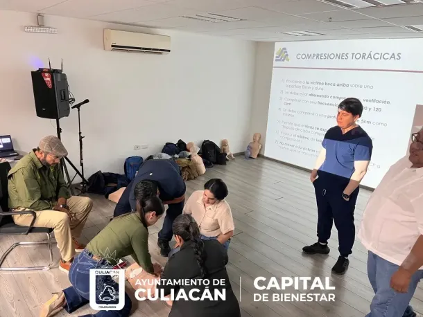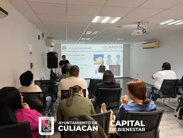 Culiacán, Sinaloa; a 17 de marzo de 2026.- Personal de la Dirección de Salud Municipal participa en una capacitación impartida en coordinación con Protección Civil Municipal y la Secretaría de Salud, con el objetivo de reforzar la atención de primeros auxilios y la respuesta ante emergencias durante el próximo periodo vacacional de Semana Santa.