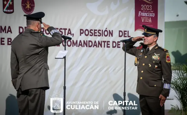 Culiacán, Sin., a 02 de octubre de 2023.- El alcalde Juan de Dios Gámez Mendívil, asistió a la ceremonia de toma de protesta y cargo del Gral. De Brigada D.E.M. Porfirio Fuentes Vélez como Comandante de la 9/a. Zona Militar, con el propósito de fortalecer la colaboración interinstitucional para trabajar en la seguridad pública de la ciudad.