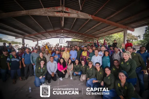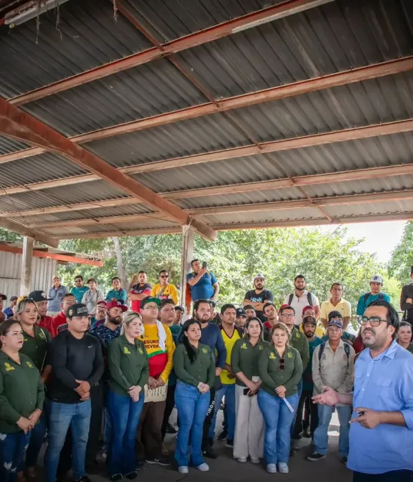 Gámez Mendívil reafirmó ante empleados municipales, reunidos en la entrada del relleno sanitario municipal, que continuará mejorando las condiciones laborales de todos.