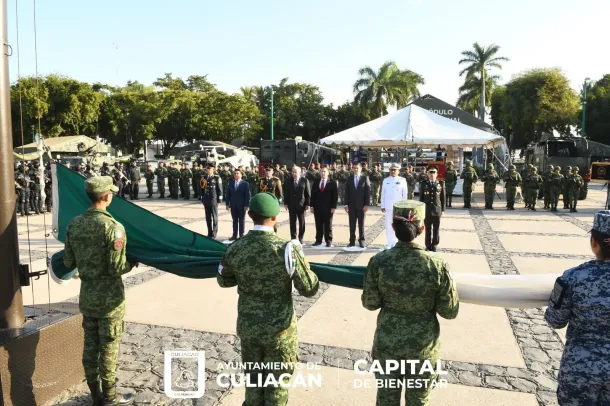 En el acto estuvieron presentes autoridades de los tres órdenes de gobierno, encabezadas por el comandante de la 9na Zona Militar, Alfredo Salgado Vargas, el gobernador del Estado, Rubén Rocha Moya, el secretario del Ayuntamiento, José Ernesto Peñuelas Castellanos, y representantes de la Guardia Nacional, Fuerza Aérea Mexicana, Secretaría de Marina, así como también organismos civiles.