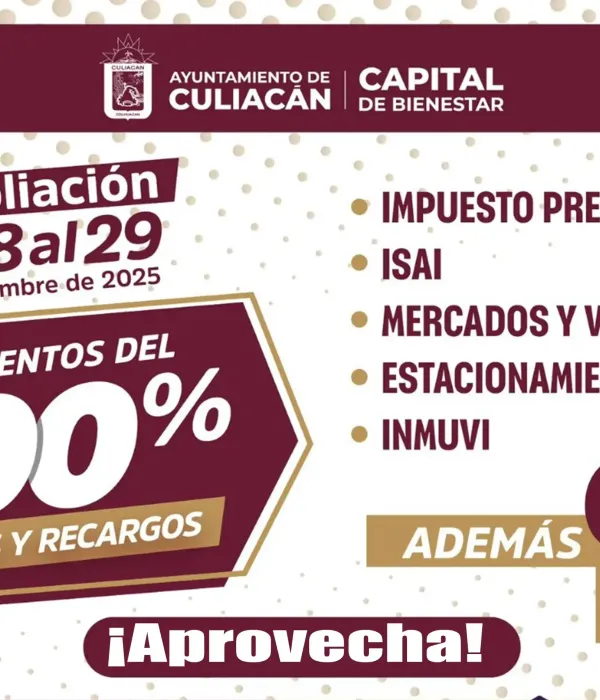 El Ayuntamiento de Culiacán invita a las y los ciudadanos a no dejar pasar estos últimos días de descuentos y aprovechar los beneficios fiscales disponibles hasta este 29 de noviembre.