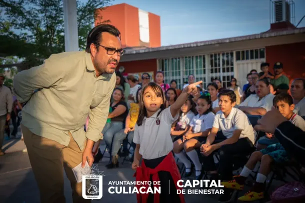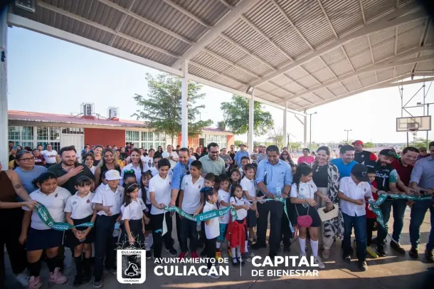 Culiacán, Sin., a 27 de junio de 2023.- Gracias por voltear a ver nuestra escuela y apoyarnos para que esté en mejores condiciones, expresaron alumnas y alumnos de la Primaria Estatal de Alturas del Sur al presidente municipal Juan de Dios Gámez Mendívil, quien cumplió su compromiso y entregó la techumbre del plantel que por mucho tiempo era esperada.